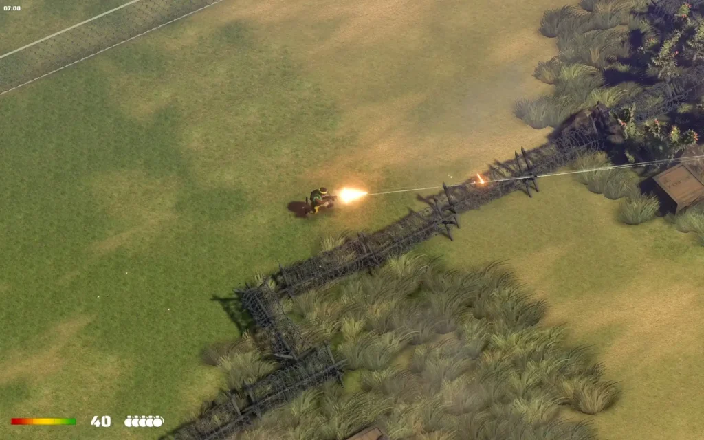 A: A big part is nostalgia. First of all, the game is greatly inspired by games from that period, like Airborne Ranger and Cannon Fodder. Personally, I like the simplicity of games from that period — more focused on a core gameplay loop than a lot of bells and whistles. The second part is that the theme fits well. Ranger Commando is meant to be a “brainless shooter.” The goal is that you can play after a long day of work for just 20 to 60 minutes to blow off steam and then put it aside again. This asks for a simple theme and not that many moral or political themes. ’80s action hero movies are a perfect fit for that. They have a very black-and-white world, with good guys and bad guys. That is perfect. The enemy in Ranger Commando (World Peace Industries) is such a stereotypical pure, unfiltered evil. It means you don’t have to feel any remorse when you blow them up in a thousand pieces with your “bazooka” (I love the word bazooka from that period — why don’t we use that anymore?) The last part is the lack of handheld long-range communication from that period. I love that idea. In Ranger Commando, you drop at the beginning of the mission with your parachute on enemy terrain. Then you have to go to the extraction point, with no external communication, throw your flare, and wait for the helicopter. The “being disconnected” adds to the feeling I want to go for.